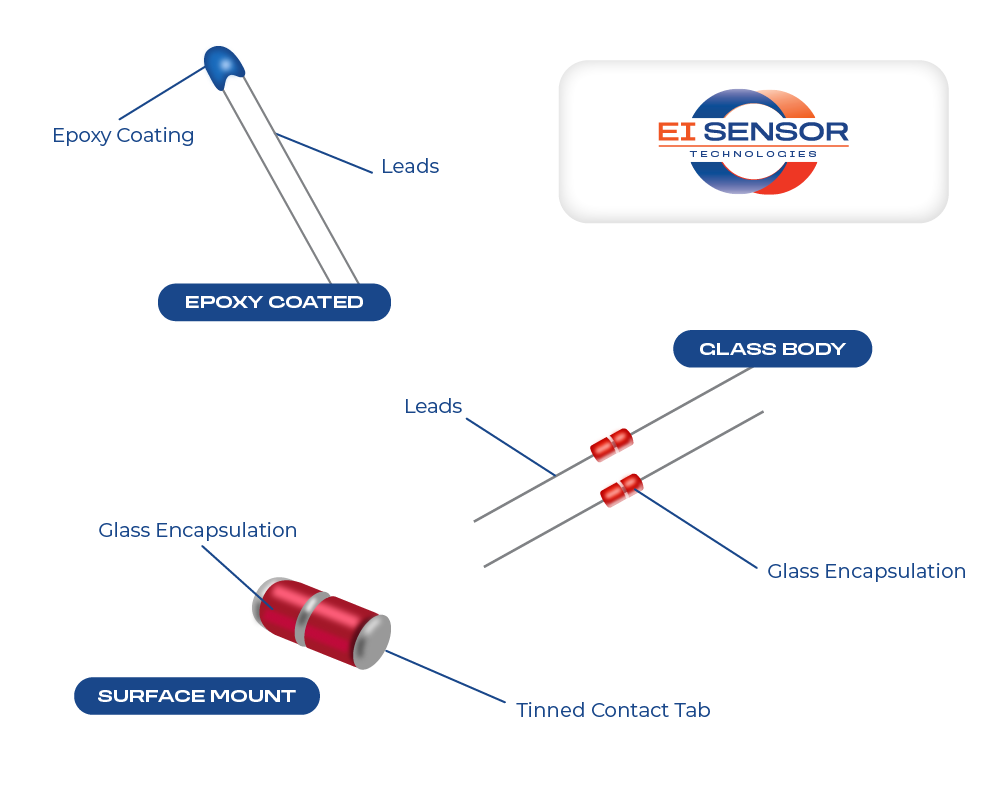 Thermistors are thermally sensitive resistors whose electrical resistance varies predictably with temperature. Thus, they are ideal for monitoring and controlling temperature in household and industrial settings. EI Sensor produces various temperature sensors in standard and custom configurations, including NTC and PTC thermistors, RTDs, and thermocouples.